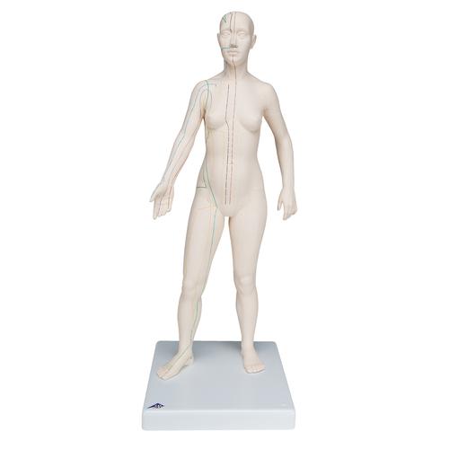 This acupuncture model sets the standard in didactics and aesthetics and has been developed in cooperation with experienced European acupuncture specialists. It is about 70 cm tall and contains 396 acupuncture points. All conduction paths are coloured according to the 5 phases. We have intentionally dispensed with Chinese labeling on the model. This makes the accurate identification of acupuncture points significantly easier. True to the motto: less is sometimes more.
