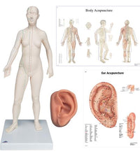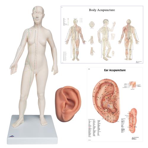 This kit includes the female acupuncture body model, a left acupuncture ear model, an acupuncture body and ear chart.