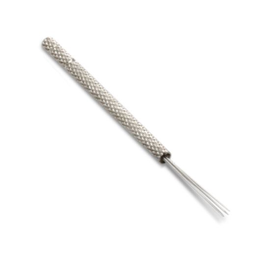 Measuring 2.3" long, the Hoki device has a series of seven needle-like ends to activate various points on the body. Also contains a 1.5" long grated handle, for a comfortable and secure grip.