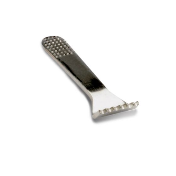 A miniature 1.5" long 22k gold-plated rake for scratching points or meridians.