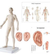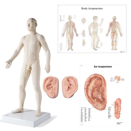 This kit includes the male acupuncture body model, a right and left acupuncture ear model, an acupuncture body and ear chart.