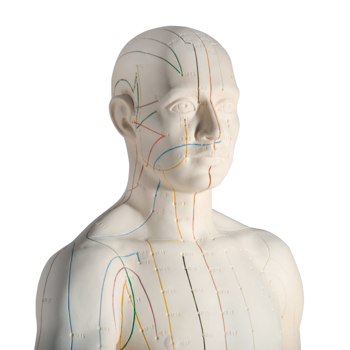 The model: This new acupuncture model sets the standard in didactics and aesthetics and has been developed in cooperation with experienced European acupuncture specialists. It is about 71 cm tall (incl. base) and contains 396 acupuncture points. All conduction paths are coloured according to the 5 phases. We have intentionally dispensed with Chinese labelling on the model. This makes the accurate identification of acupuncture points significantly easier. True to the motto: less is sometimes more.