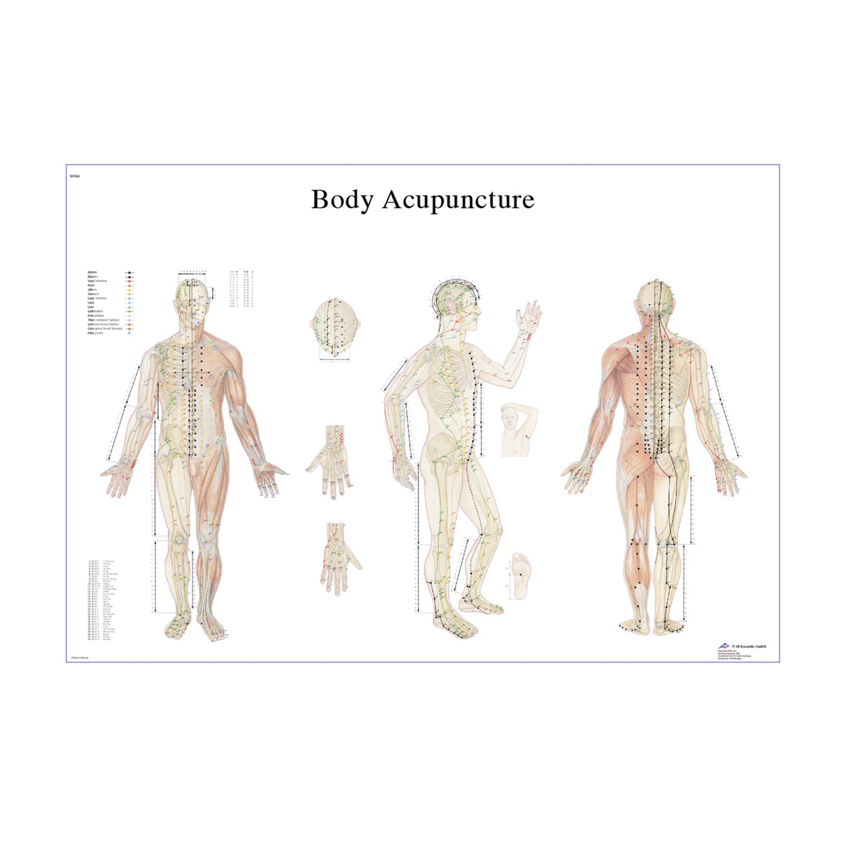 The chart: This anatomical poster details the important zones and regions of the body for acupuncture. Whether for education or as a reference tool this anatomy poster is great for anyone interested in acupuncture. This thickly laminated anatomical chart is printed on premium glossy (200 g) UV resistant paper and comes with 2 sided lamination (75 micron). It comes in a convenient poster size 27" x 39" and can be written on and wiped off with non permanent markers. The poster's 75 micron lamination ensures the chart does not curl up at the edges and the UV treatment ensures the chart does not get a faded yellow color over time.