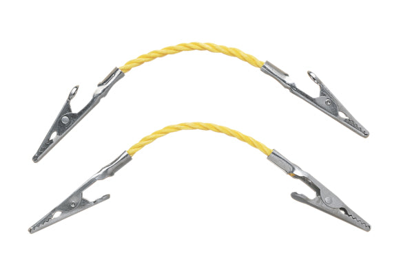 Long bib, clip Make "do-it-yourself" bibs out of napkins, towels, plastic film, or other materials. Consists of braided nylon cord with a spring tension pinch clip at each end. The long version has a sliding plastic bead to make it length adjustable.