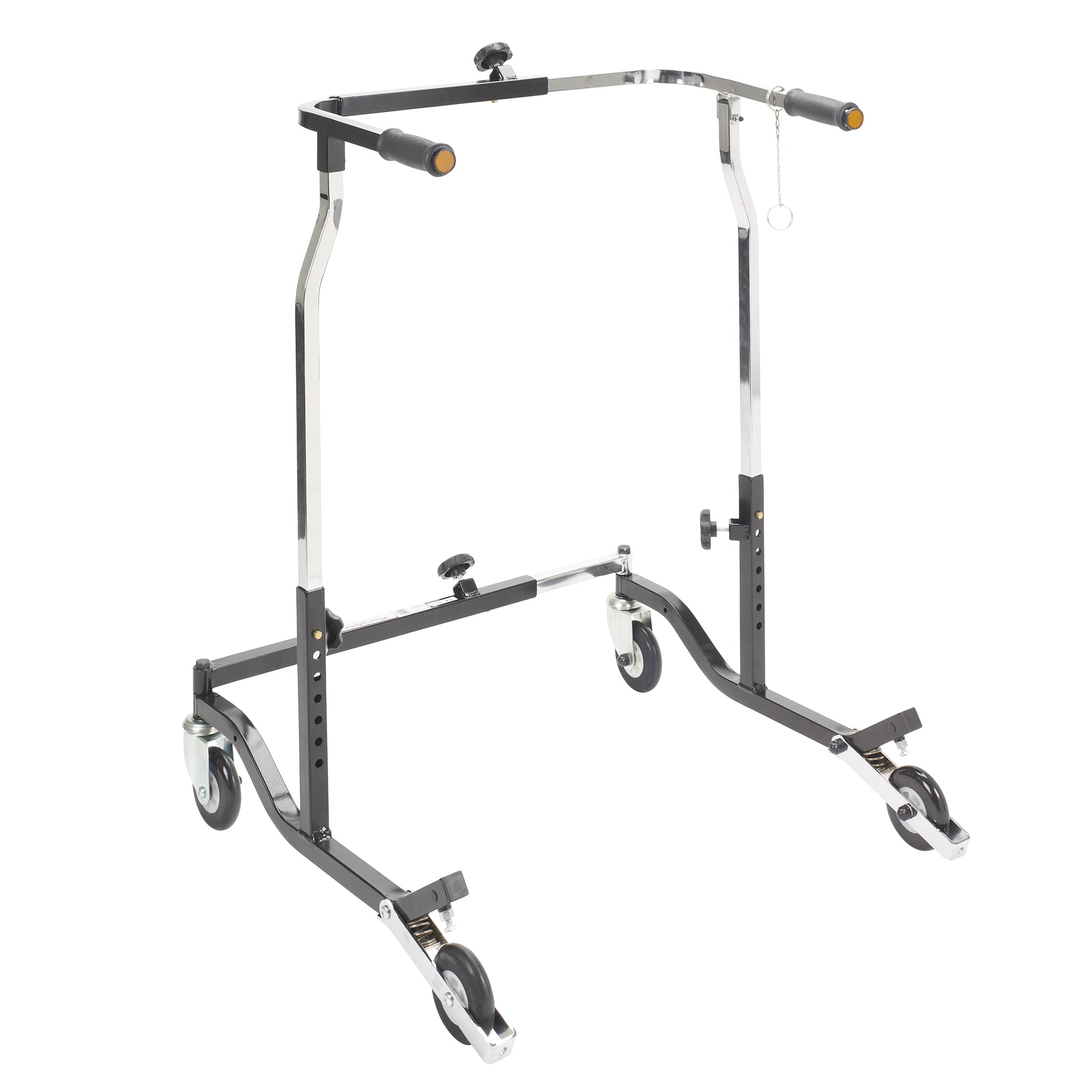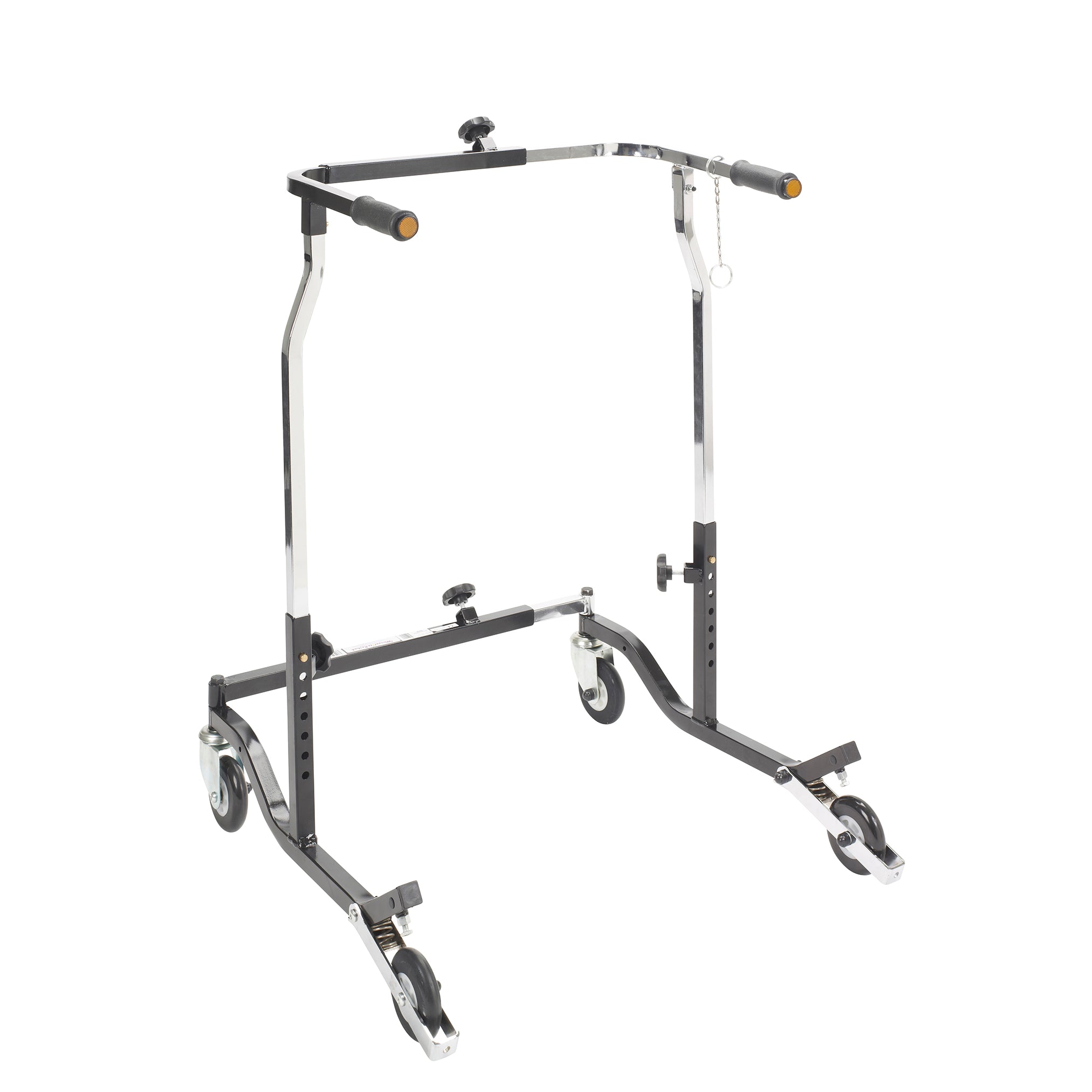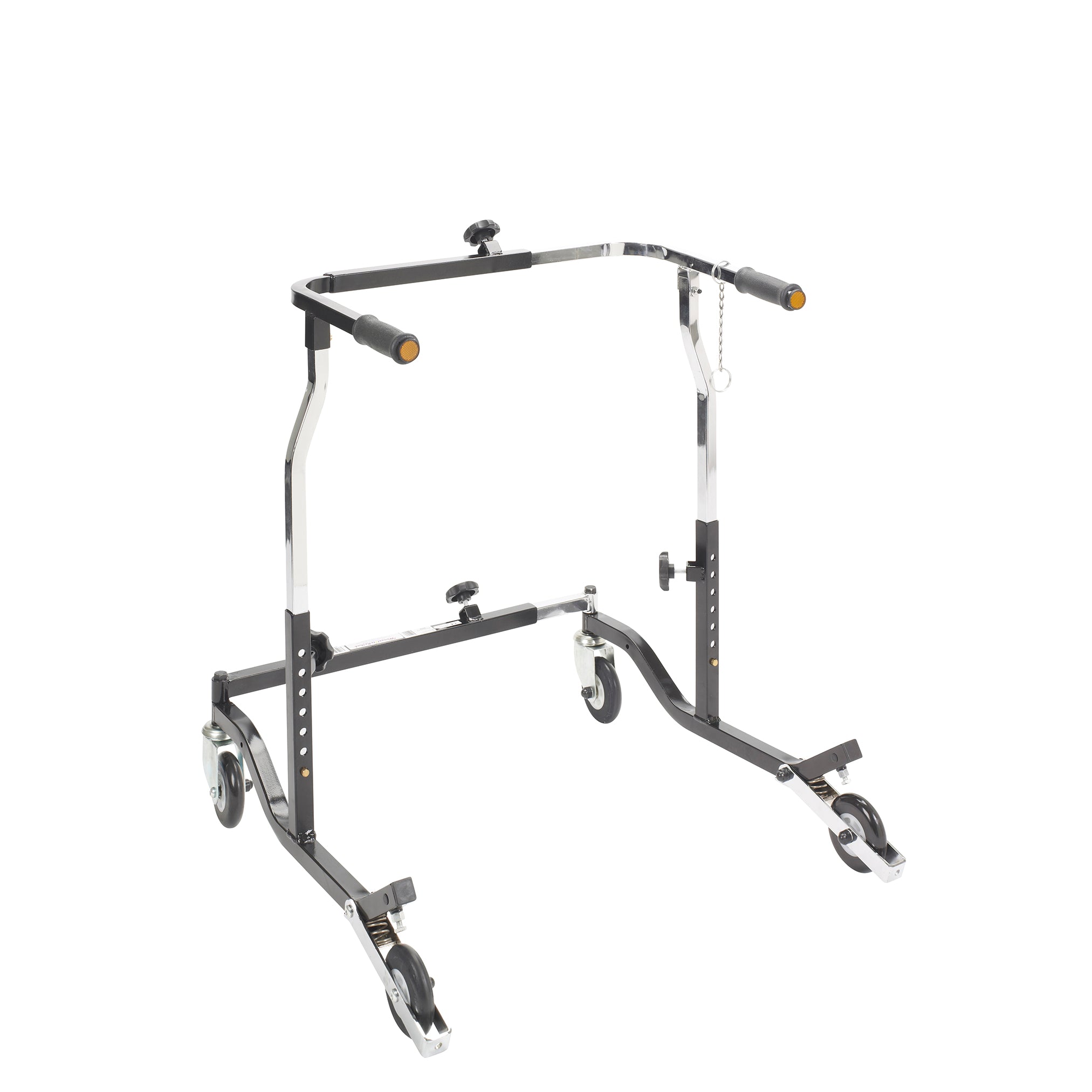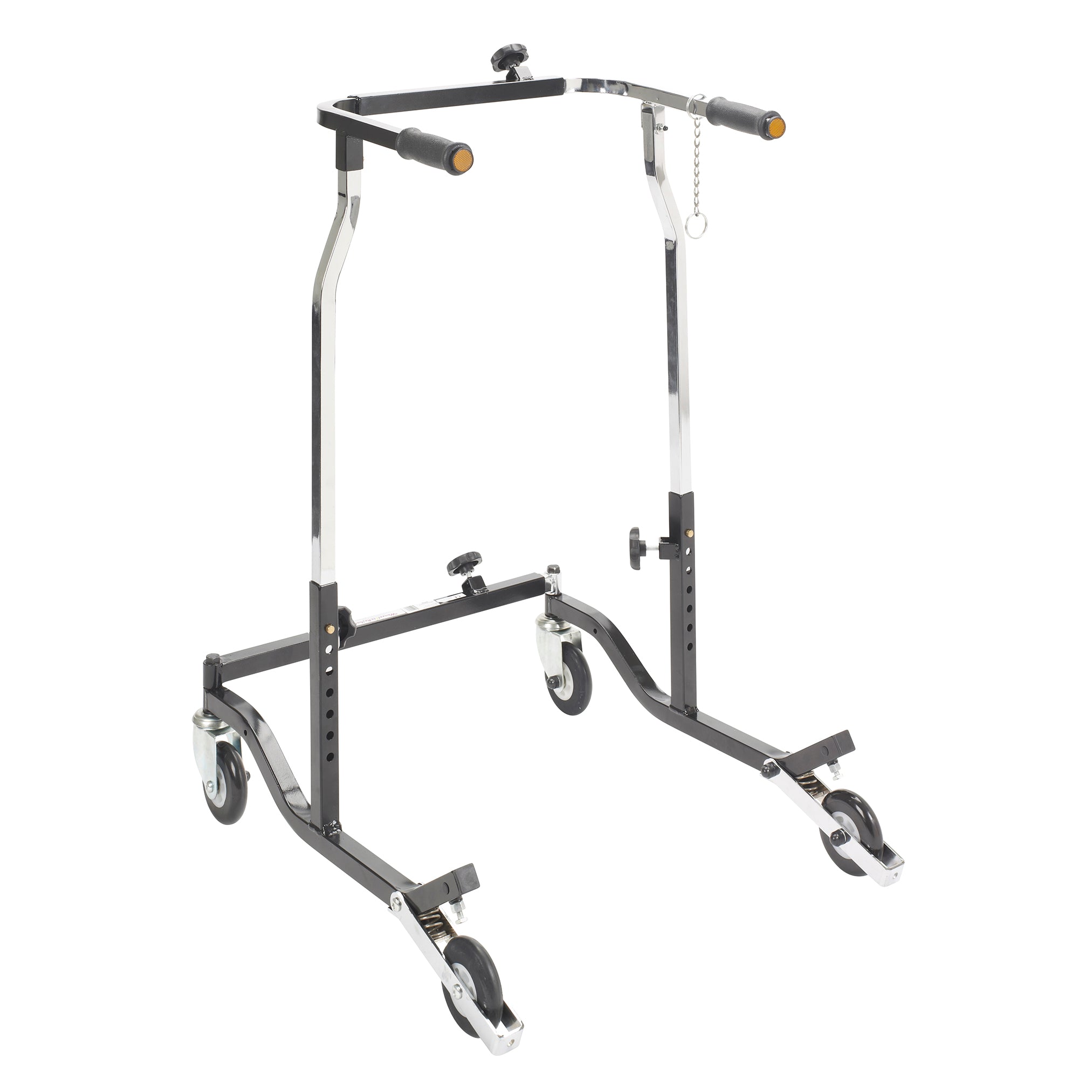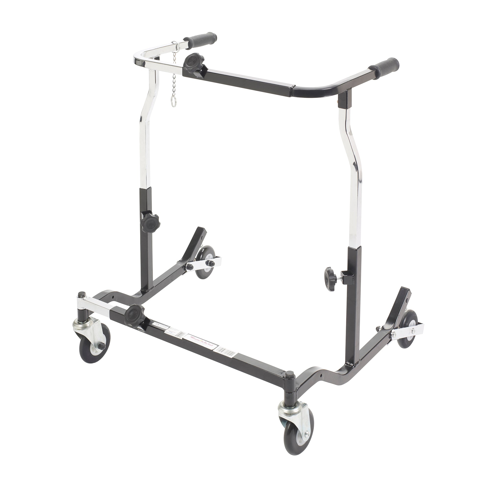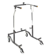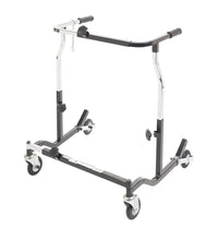 The Bariatric Anterior Safety Roller from Wenzelite features sturdy construction and a functional design to give adult users confidence as it encourages safe ambulation and a sense of freedom. The unit's adjustments and modular components allow it to be tailored to the specific user. Simple pressure to the Roller's handlebars activates the secure braking mechanism, preventing the wheels from rolling, which is ideal for users with limited hand function or limited cognizance. The Roller also halts in step with the user and the brake automatically engages should the user stumble.