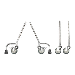 Mobility legs quickly and easily convert a First Class seating system into a convenient mobile chair. The four swiveling casters allow easy movement of the chair with the seated child. Wheels lock securely in place for security.