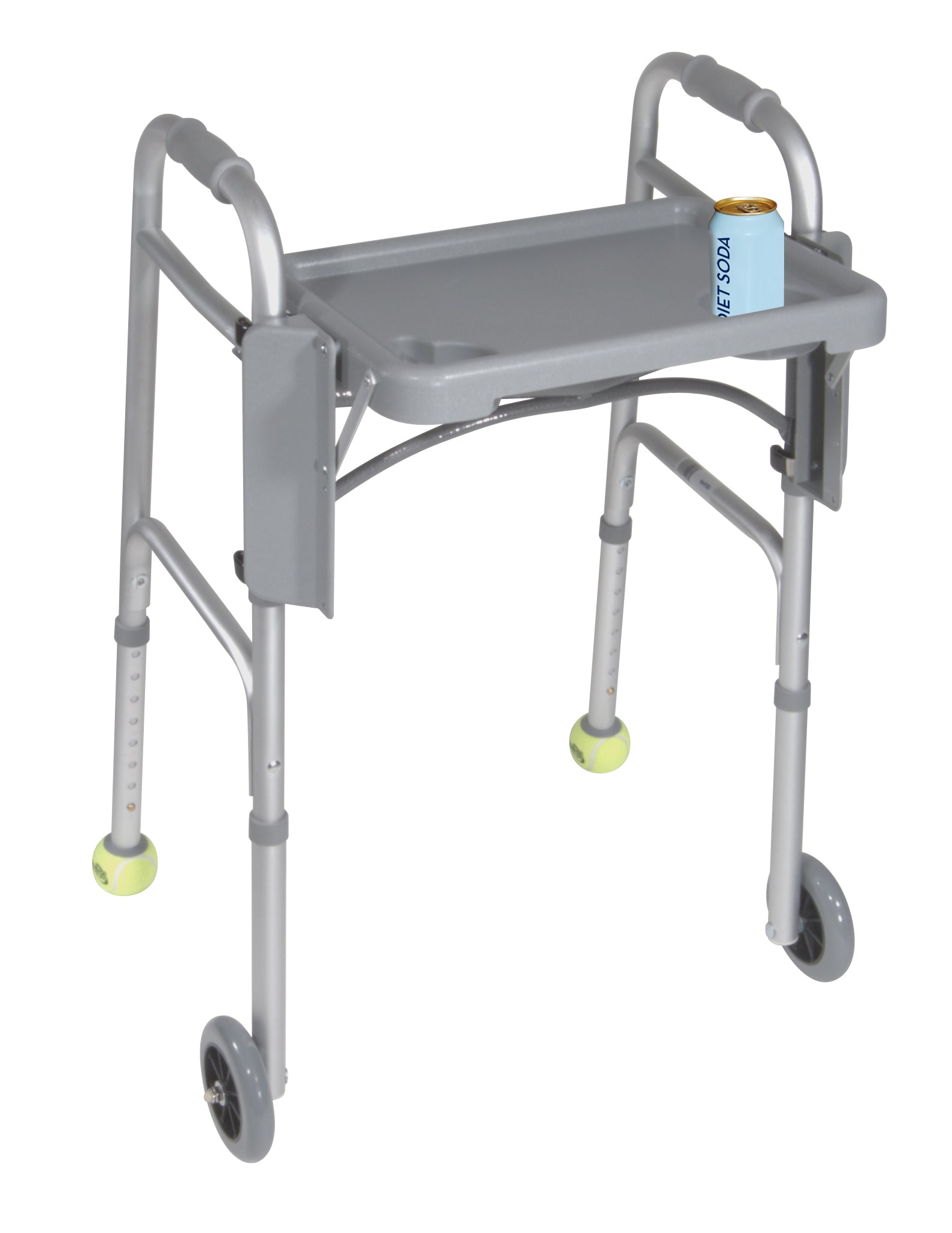 The Walker Tray with Cup Holders by Drive Medical will fit most manufacturers 2 button walkers. It allows you to carry personal items, safely and securely from room to room. It comes with two convenient cup holders and it will easily fold down when not in use. Create a level, stable surface for work or play wherever you go with our easy-to-clean Walker Tray with two handy drink holders.