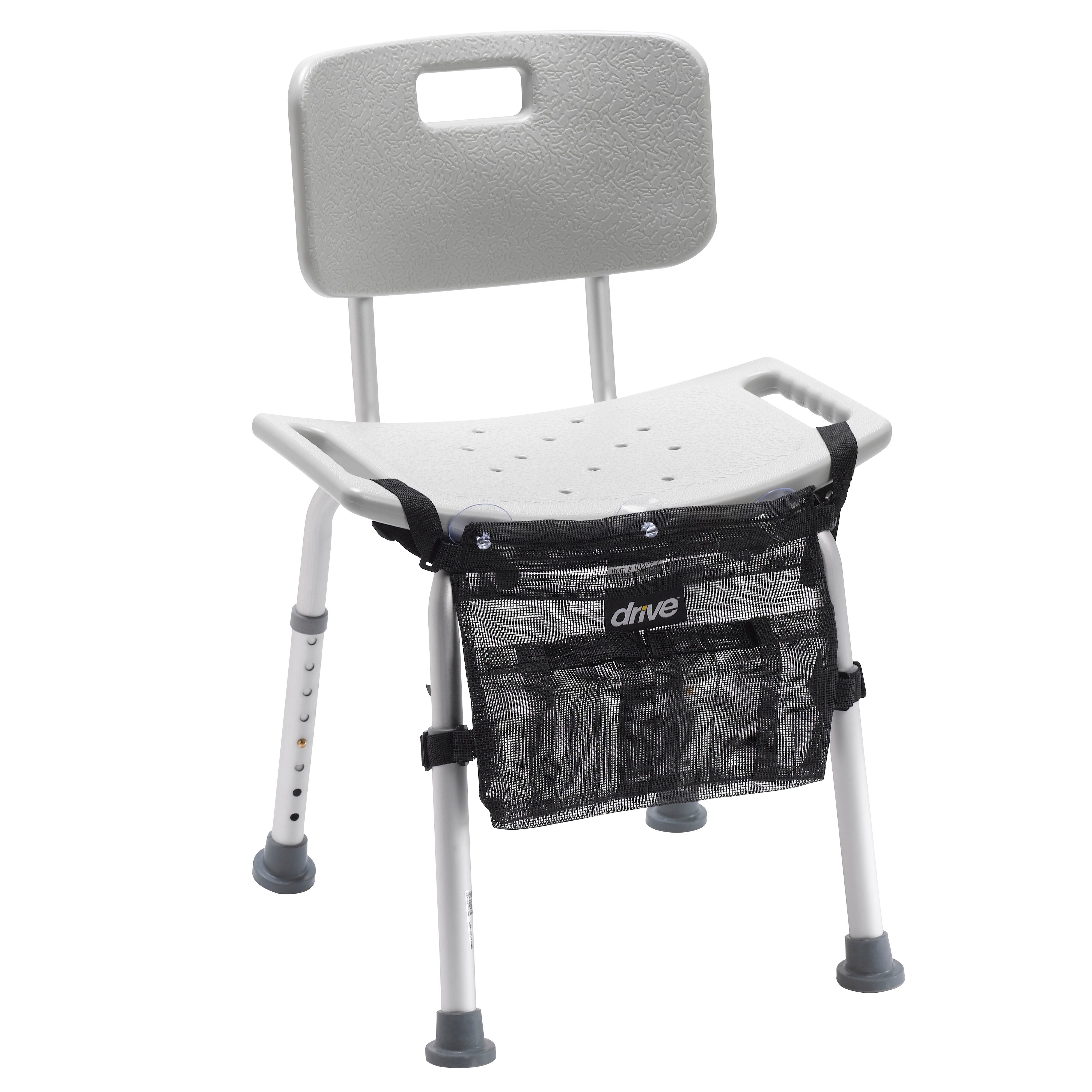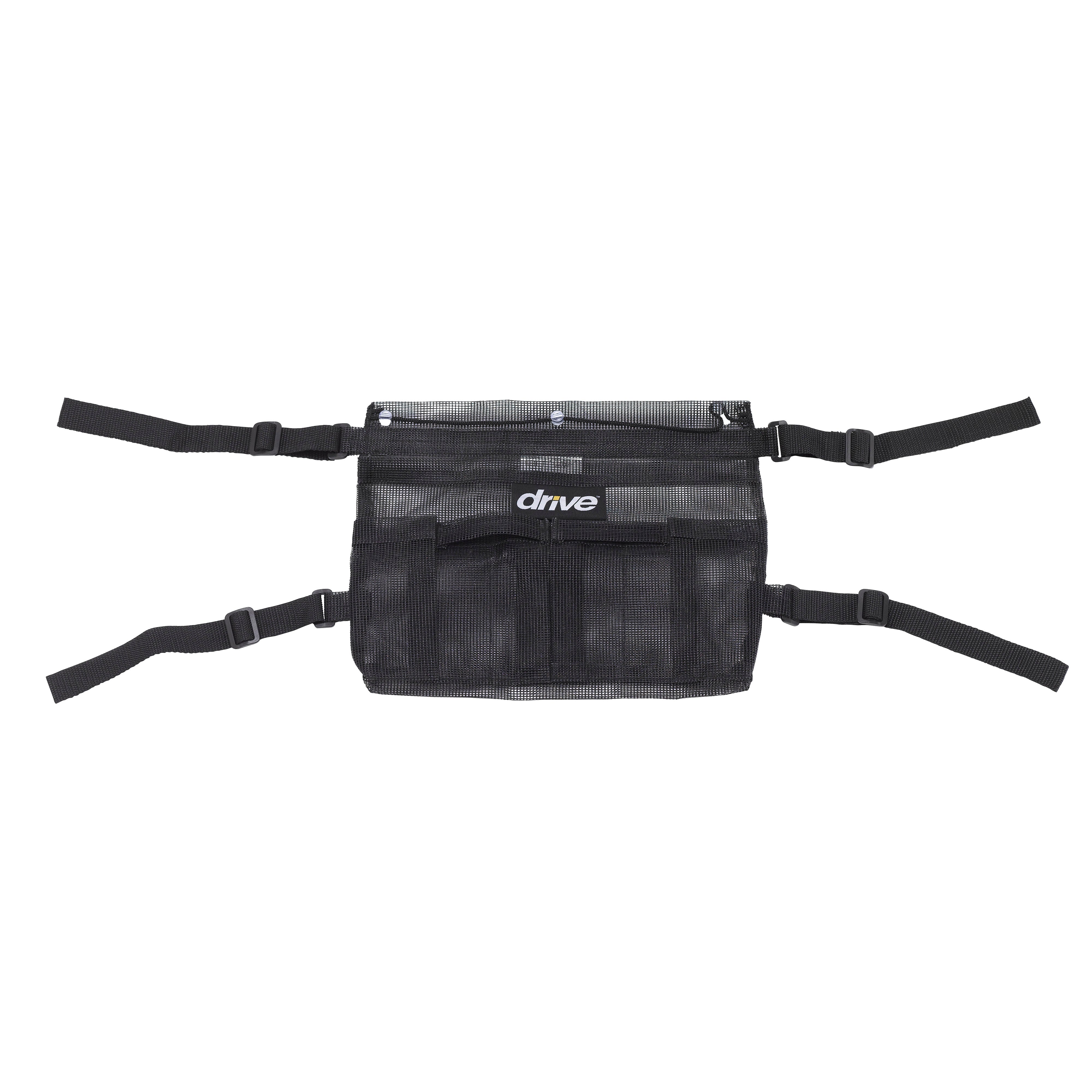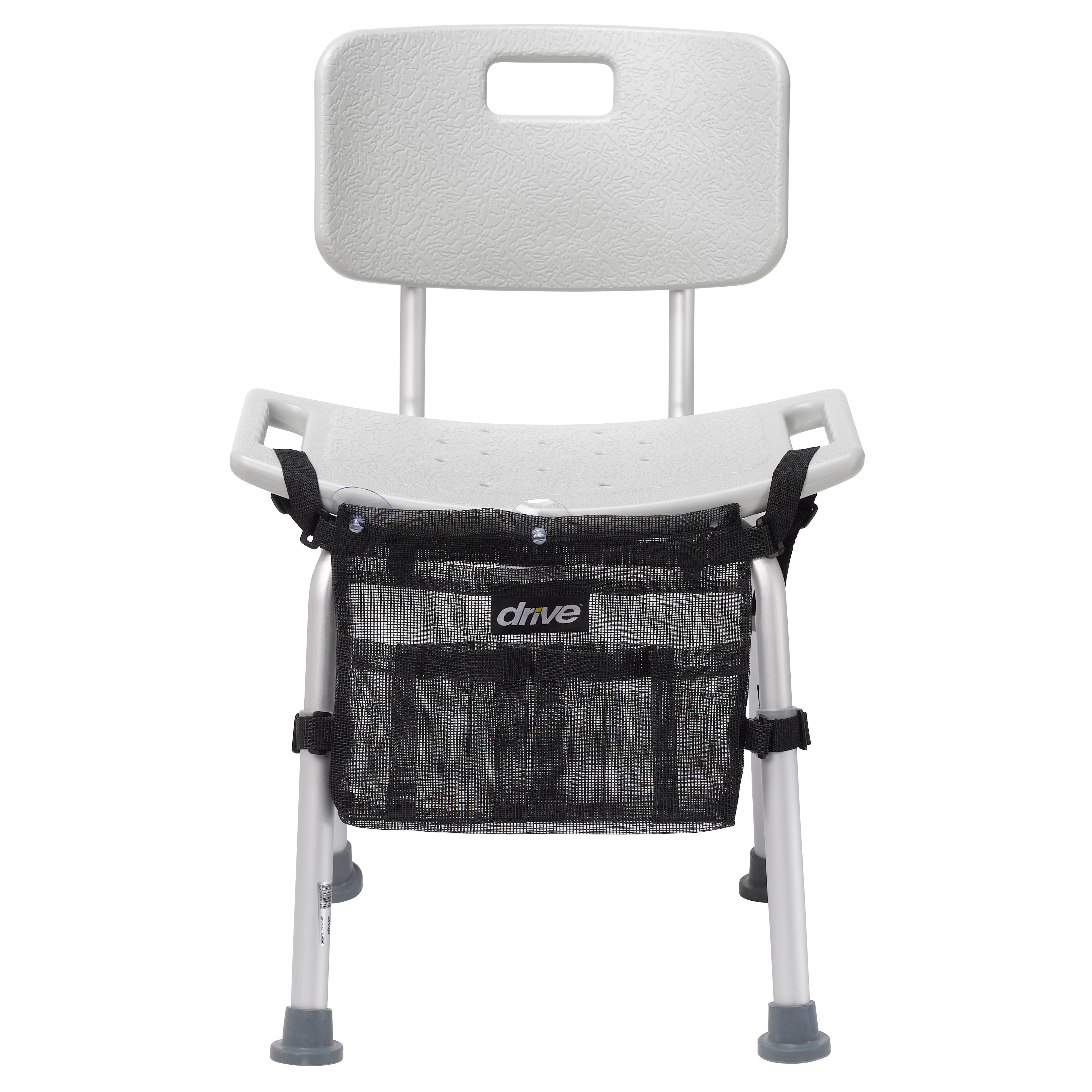 This universal bathing pouch from Drive Medical attaches anywhere: under a bath bench, under a transfer bench or as an attachment to the wall. Large storage pockets provide space and convenient access to hold many personal items needed during bathing. The vinyl mesh material is breathable and allows water to drain. The 10" x 13" x 1" pouch attaches without tools and is machine washable.