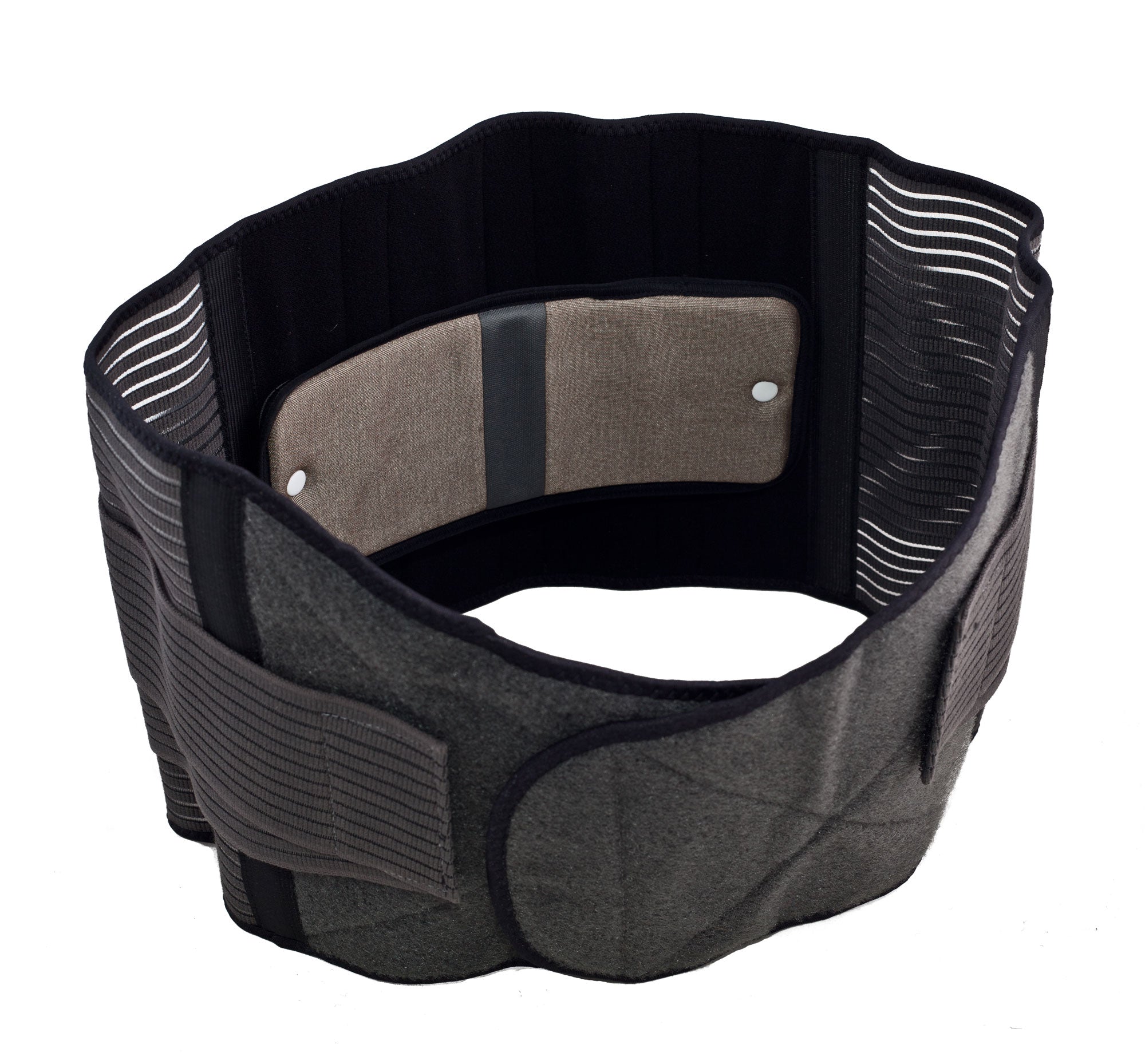 The Electric back is a high end back compression brace that accommodates any of the conductive patches via hook and loop Velcro. Position the patches where needed, and move at will. If not utilizing the electrotherapy, remove the patches and use this brace as a full functioning active back brace. The electric back can accommodate 2-4 conductive patches. This allows for both TENS channels to be used at once in one brace utilizing two double strip patches.