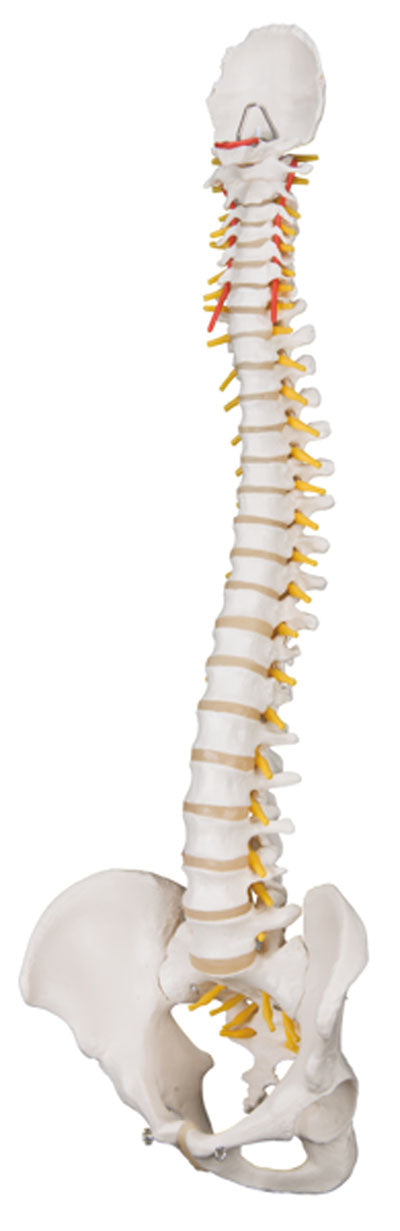 Spinal column models are flexible and designed for hands-on demonstrations. Features female pelvis and occipital plate, L3-L4 disc prolapsed, spinal nerve exits, cervical vertebral artery. Stand is not included. Now included with all 3B Scientific Anatomy models is the 3B Smart Anatomy app. This app allows users to register their 3B item to extend the warranty ...Show more Dimensions: 29" x 10" x 10"