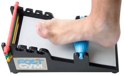 The Foot Gym ankle exerciser is a useful device for stretching, exercise and rehabilitation. Good for foot injuries such as plantar fasciitis, Achilles tendonitis, heel pain, shin splints and more. Exercise: three color-coded resistance bands for toe curl, toe flexion, and dorsiflexion. Stretch: platform angle is great for stretching the calf muscles, Achilles tendon and plantar fascia.