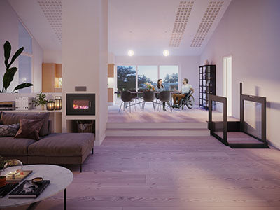 FlexStep embodies innovation and accessibility, serving as both steps and a lift for wheelchair users. If finding space for both a flight of stairs and a stairlift is proving problematic, a FlexStep stairlift could be the answer you are looking for. This clever 2-in-2 stairlift and steps solution gives you both stairs and a stairlift even in the tightest places; ...Show more