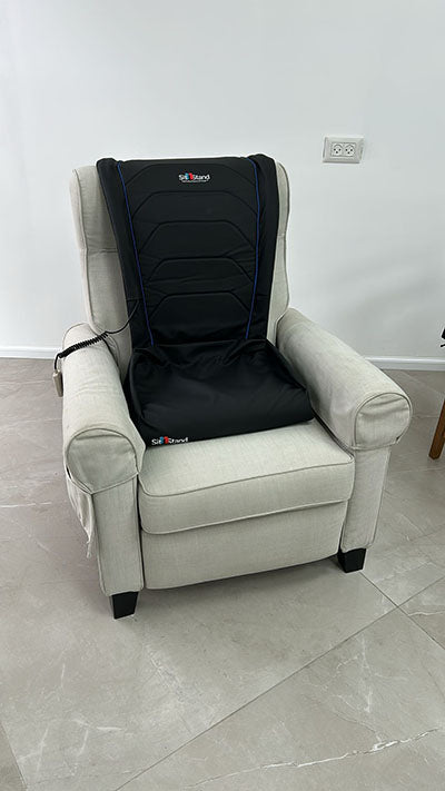 The SitnStand Lift Assist is a portable rising seat was designed to promote mobility among people who are challenged in transitioning from sitting to standing positions, due to aging, chronic illness, or disability, empowering independence while reducing the risk of falls and injury.