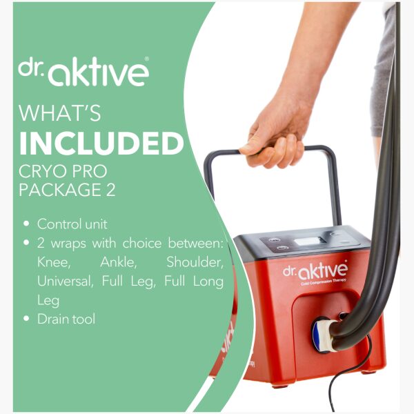 The Cryo Pro Package 2 is an easy-to-use cold compression therapy system that only requires ice, water, and a power source.