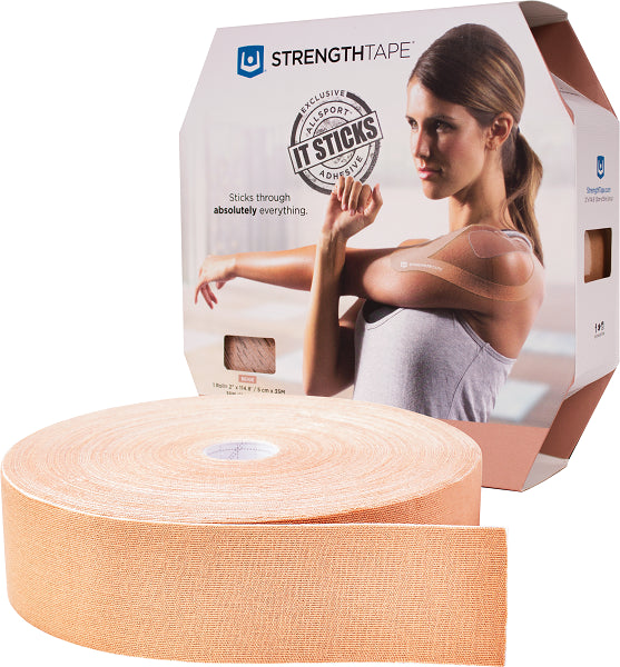 STRENGTHTAPE® features long-lasting durability and effectiveness on common injuries. Class exclusive AllSport Adhesive helps it sticks for up to 7 days through water, sweat, and mud to support injured muscles and tissues while still allowing full range-of-motion. STRENGTHTAPE® is made of breathable cotton and Spandex. It is not made with natural rubber latex. STRENGTHTAPE® 35m rolls include tape for up to 70 complete applications. Each roll includes easy-to-follow instructions for the most common injuries. Additional application videos can be found on our website.