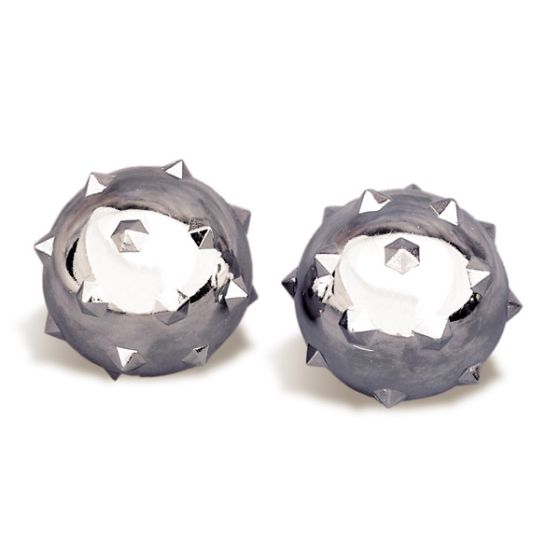 Pair of two larger sized 1.5" dia space-age chrome plated plastic balls offer the best hand exercise and massage with 1,000 gauss magnetic energy. 22 spikes stimulate hand and body by acupressure and allow comfortable, easy gripping and hand/finger manipulation.