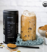 INGREDIENTS: Organic Mushroom Blend (Chaga, Reishi, Lion's Mane and Cordyceps Mushrooms and Mycelium cultured on Organic Oats and/or Organic Sorghum), Organic Cacao, Organic Spice Blend (Organic Cinnamon, Organic Turmeric, Organic Ginger, Organic Cardamom, Organic Black Pepper, Organic Nutmeg, Organic Cloves), Organic Black Tea Powder, Himalayan Pink Salt