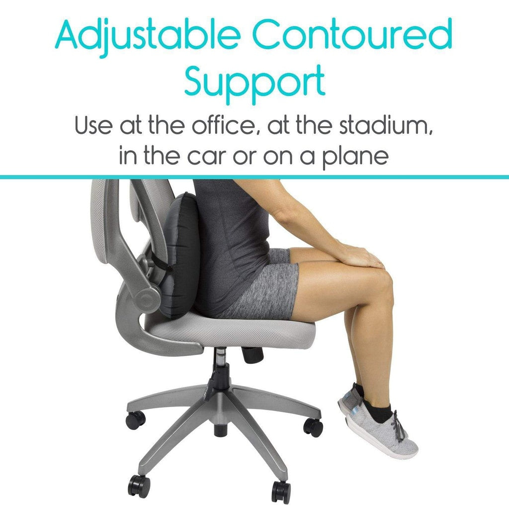 Featuring a unique, dual-layer air valve, the lumbar cushion inflates with minimal effort. A second valve layer allows air to be gently released to adjust the level of support for personalized comfort.