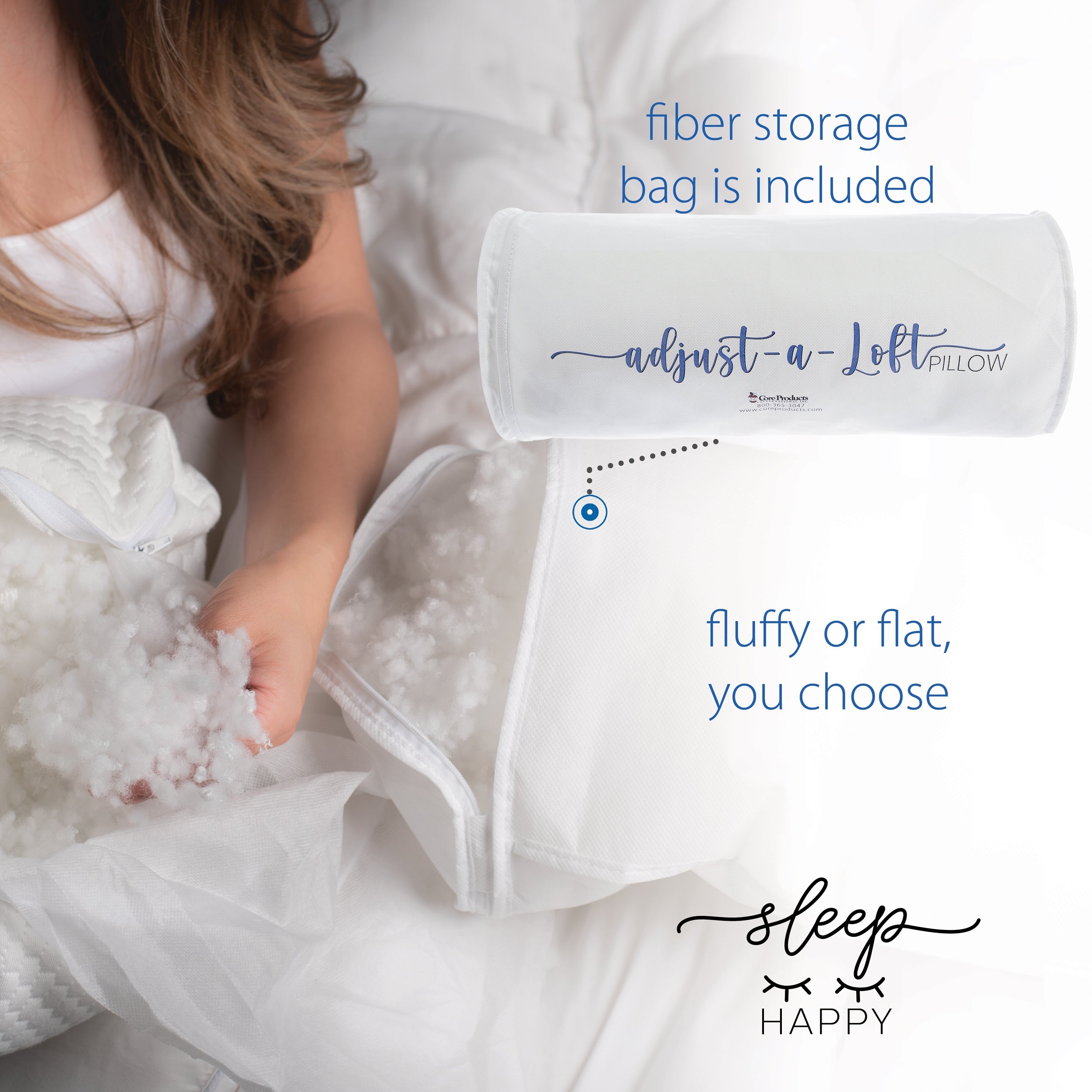 The soft, clean, virgin cluster fiber increases the life of the pillow because the little fiber balls rearrange themselves inside the pillow when "fluffed", preventing lumping and increasing the resiliency of the pillow. Cluster fiber is soft, does not clump or bunch, is hypoallergenic and machine washable for added convenience and easy care. The pillow will arrive overstuffed so you can easily unzip the cover to remove as much fiber as you would like. It's packaged in a reusable bag that can be used to store the fiber you've removed, so you can add fiber back in the pillow later. Simply remove or add stuffing throughout the life of your pillow to suit your size, shape, or sleep position and SLEEP HAPPY!