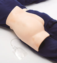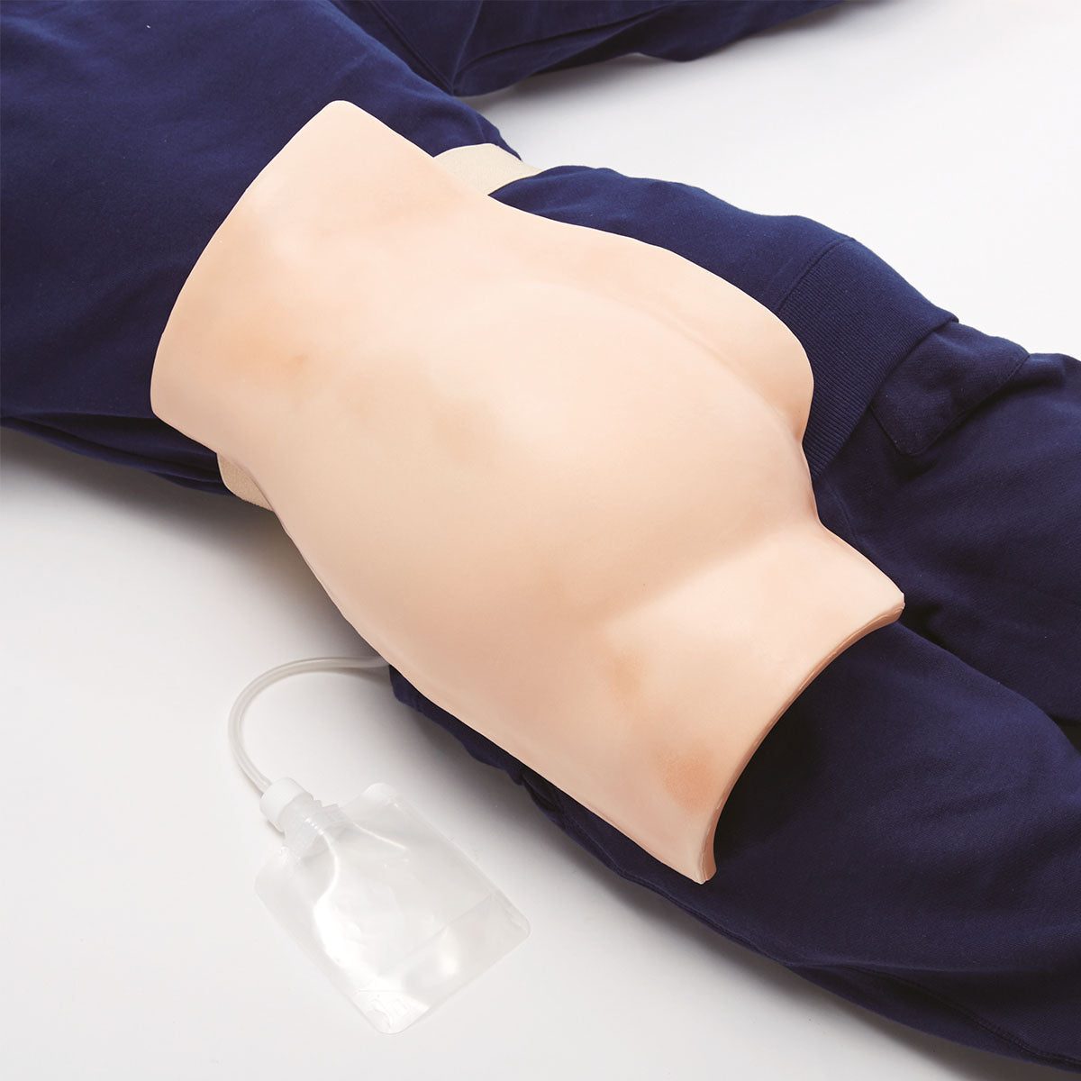 This easy to handle simulator of a human buttock can be fastened like a belt on the body of a student or a training doll. It allows practicing of intra-muscular injections and also the injection of fluid (water) is possible. If the injected part is incorrect, a buzzer, which works with a 9 volt battery and a red light, will give a warning sound. The durable, soft and very realistic skin shows no needle marks even after many exercises. 5.5 x 13.6 x 19.5 in