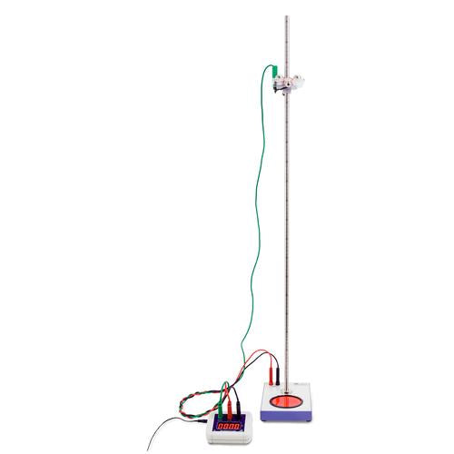 Apparatus for measuring the time it takes for a ball to fall a certain distance using a digital timer. Very easy to set up and use but nevertheless highly accurate. Includes 3 steel balls.