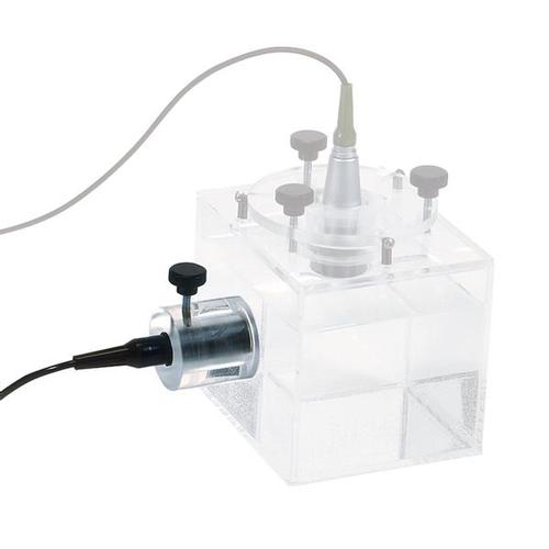 Laser diode of protection classification II with 1 m connector lead and barrel connector for connecting ultrasonic cw generator (U100061). Fits the laser holder of test vessel (U10008). All lasers have been measured to determine their wavelength specifically and the results are logged.