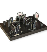 Complete equipment set consisting of two beam splitters, two surface-coated mirrors, two observation screens and four polarisation filters. The high-grade optical components mounted on a heavy, rigid base plate for precise and reproducible measurements. Beyond the first beam splitter, the two parts of the split beam take different paths to the second beam splitter, where they are once again superimposed. This means that by adding in polarisation filters, it is possible for the two beams to be differently polarised. The large optical components permit a generation of clear and well-defined interference patterns , which can even be viewed in daylight as the tilt of the two reflecting observation screens can be adjusted. Pre-defined component positions allow quick rearrangement to ensure extremely rapid preparation for the various experiments. The equipment set includes a stable plastic box for storing the mounted and adjusted interferometer as well as the base plate for laser. Beam splitter: Diameter: 40 mm Evenness: l/10 (front side), l/4 (rear side) Surface-coated mirror: Dimensions 40x40 mm² Evenness: