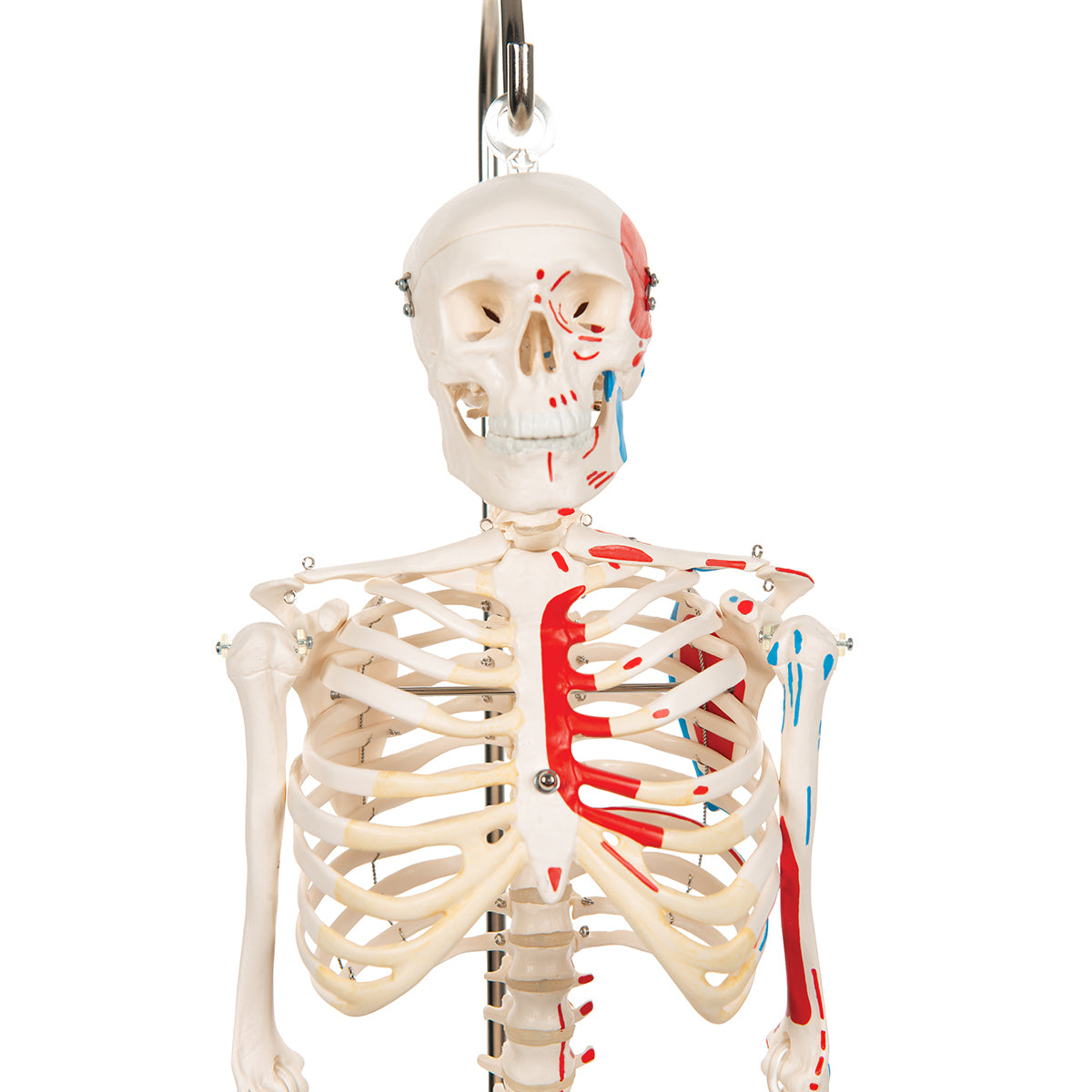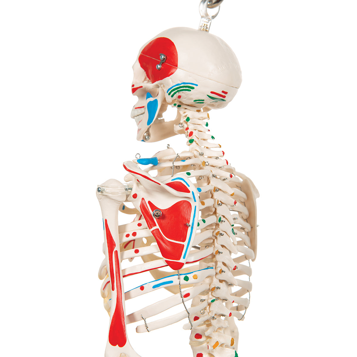 Mini Human Skeleton Shorty with Painted Muscles on Hanging Stand, Half Natural Size - 3B Smart Anatomy - 1000045