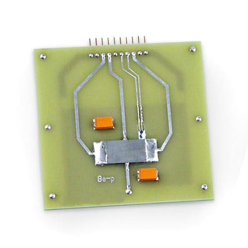 High-quality interchangeable board with an p-doped germanium crystal for investigating the conductivity and Hall potential for p-doped germanium as a function of temperature. With contacts for transverse current and Hall potential, integrated resistive heating element with temperature sensor directly under the crystal and multi pin plug for connecting the circuit board to the basic Hall effect apparatus (U8487000).