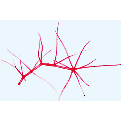 1(d). Stem apex and meristematic tissue, Asparagus l.s. 2(c). Aleurone grains, t.s. of Ricinus endosperm 3(d). Fat in sec. through endosperm of Corylus 4(c). Lysigenous oil glands, t.s. rind of Citrus fruit 5(d). Inulin crystals, t.s. of Dahlia tuber 6(b). Calcium oxalate crystals, in w.m. of onion dry shell 7(b). Wood cells, macerated 8(c). Lactiferous vessels, l.s. stem of Euphorbia (spurge) 9(d). Chloroplasts in leaf of Elodea w.m. 10(b). Branched leaf hairs, isolated from Verbascum (mullein) 11(d). Reserve cellulose, t.s. of Phoenix (date) seed 12(c). Rheum, rhubarb, root with crystals t.s. 13(c). Dendrobium, orchid, aerial root with velamen t.s. 14(c). Pinus, pine, older woody root t.s. 15(c). Smilax, root with thickened endodermis t.s. 16(d). Lupinus, lupin, root nodules with nitrogen fixing bacteria t.s. 17(c). Quercus, oak, older woody root t.s. 18(c). Daucus, carrot, storage root t.s. 19(c). Pinus, pine, older woody stem t.s. 20(c). Zea mays, corn, stem with bundles l.s. 21(c). Elodea, waterweed, aquatic stem with primitive bundle t.s. 22(c). Juncus, bulrush, stem with stellate cells t.s. 23(c). Pelargonium, geranium, young stem of an annual plant t.s. 24(d). Tilia, lime, older woody stem t.s. and l.s. 25(c). Acorus calamus, sweet flag, rhizome t.s. 26(d). Pinus, pine, three sections of wood 27(d). Fagus, beech, three sections of wood 28(c). Bryonia, stem with sieve plates t.s. 29(c). Ribes, currant, stem with phellogen t.s. 30(c). Helianthus, sunflower, typical dicot stem t.s. 31(c). Salvia, sage, square stem with collenchyma t.s. 32(c). Nymphaea, water lily, floating leaf t.s. 33(c). Dionaea, Venus fly trap, leaf with digestive glands t.s. 34(d). Fagus, beech, sun and shadow leaves on one slide t.s. 35(c). Pinguicula, butterwort, leaf with glandular hairs t.s. 36(c). Nerium, oleander, xeromorphe leaf with sunken stomata t.s. 37(d). Drosera, sundew, leaf with glandular hairs w.m. 38(d). Urtica, stinging nettle, leaf with stinging hairs 39(c). Utricularia, bladderwort, w.m. of bladders 40(d). Pinus, pine, male cone with pollen l.s. 41(d). Pinus, young female cone with ovules l.s. 42(f). Pinus, ovule with archegonia l.s. 43(e). Pinus, mature embryo with endosperm t.s. 44(b). Pinus, pollen grains with wings w.m. 45(f). Lilium, lily, young anthers showing meiosis of pollen mother cells 46(d). Tulipa, tulip, ovary t.s. showing arrangement of ovules 47(d). Taraxacum, dandelion, composite flower l.s. 48(d). Papaver, poppy, flower t.s. shows floral diagram 49(d). Phaseolus, bean, pod showing pericarp and seed t.s. 50(d). Lycopersicum, tomato, young fruit t.s.