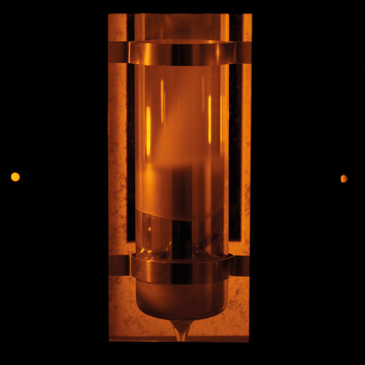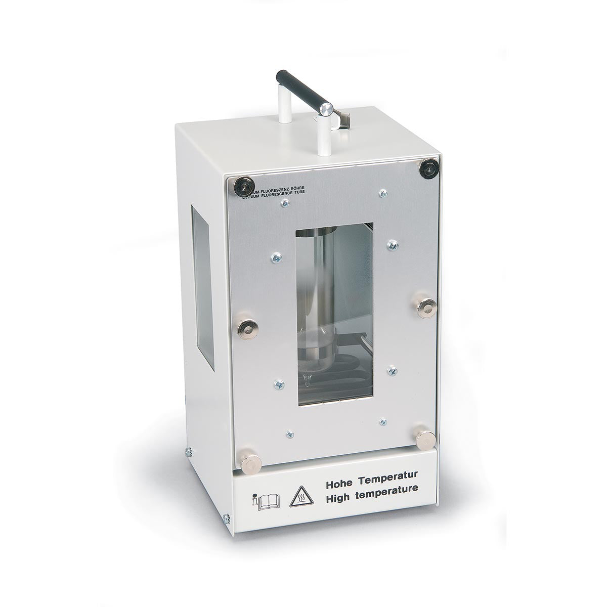 Highly evacuated glass tube filled with low-pressure argon and containing multiply distilled sodium for demonstrating the resonance fluorescence of sodium vapor. The entire tube emits yellow light at the wavelength of the sodium 'D' line when heated using the Heating Chamber (U8482190-115 or U8482190-230) and illuminated with diffuse sodium spectral light. If the tube is instead illuminated with full-spectrum white light (e.g. from an incandescent bulb), the transmitted light exhibits a dark absorption line at the position of the sodium D line.