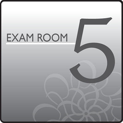 Simple, direct and understated define these Standard Exam Room Signs from Clinton. This Exam Room Sign features dark gray text over a gray background and features a simple geometric pattern. This is an individual sign noting Exam Room 5. All Ocean Series Office Signs are available individually. Durable, each sign is pre-mounted on ridged black plastic. Signs ...Show more Dimensions: 5.5" x 1" x 5.5"