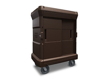 The Tray-Master is a non-insulated meal tray delivery cart designed for high impact resistance and frequent use. Easily stack Rock, Rock 2.0, or X-Trays neatly inside. Accommodates trays up to 9 1/2" x 14 1/2". Raised top edge surfaces safely holds more trays, beverage servers and wash racks. Handle slots for easy navigation. 90 degree Dual-Lock doors (lock ...Show more