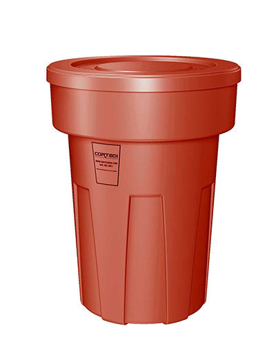 50 Gallon Cobra Can made from food grade plastic. Molded in handles 360 degrees around the can will prevent the handles from being broken off.