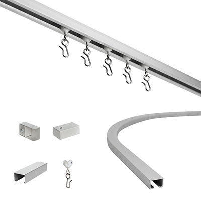 L-Shape Privacy Curtain Kit is designed for beds in hospitals, nursing homes, doctors' offices, laboratories and other types of facilities that use hospital-style privacy curtains. It can also be used in residential and commercial applications. It is an extruded aluminum cubicle curtain track and measures 1-1/8" wide x 3/4" high. The curtain fabric is made