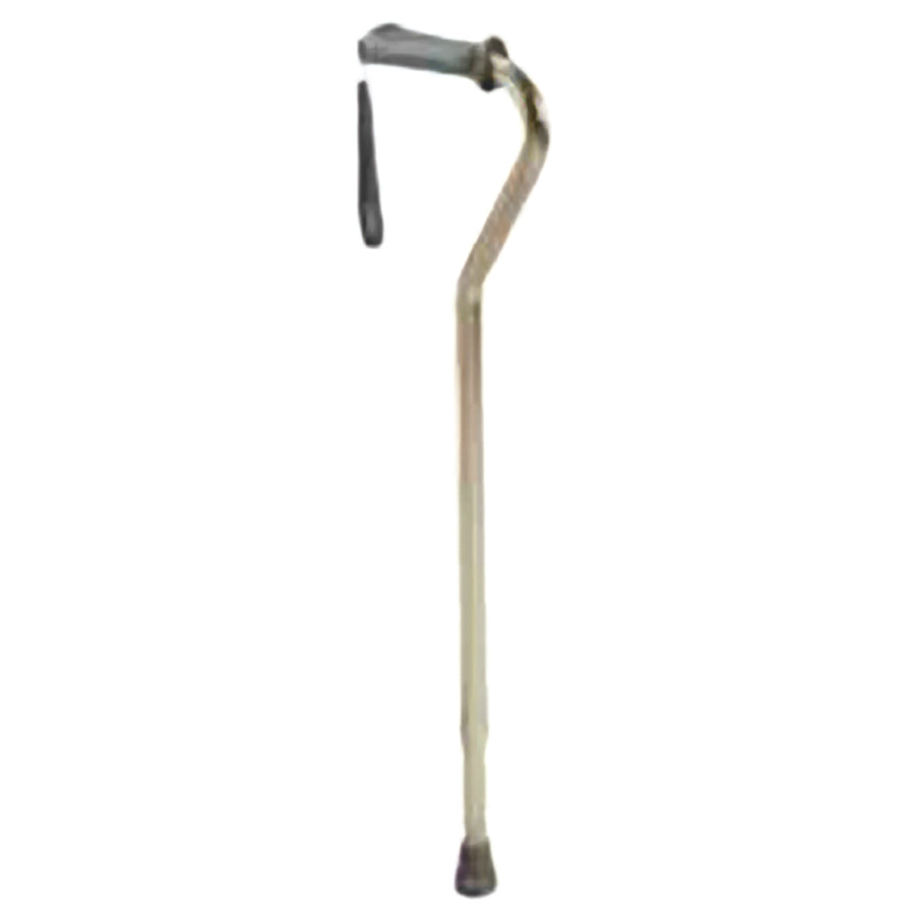 Aluminum, black foam grip and bronze shaft with wrist strap.
