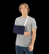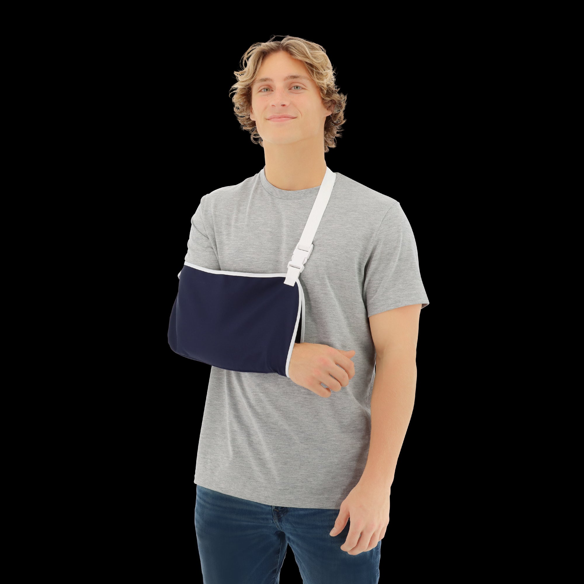 The pouch style Arm Sling helps relieve arm and shoulder pain by supporting the arm against the body while acting as a reminder to minimize movements. The deep pocket design evenly distributes the weight of the arm to help reduce pressure points and prevent injury aggravation.