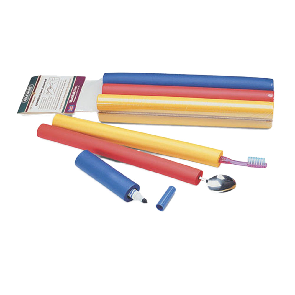 Built-up handles give greater control to people who lack coordination, strength or gripping ability Tubing has a slip-resistant "skin" and is dishwasher safe Supplied in 12" pieces that can be cut to length Each package contains six foam tubes Bright Assorted Package (For visually impaired and pediatric use.) – Includes two bright yellow, 1/4" I.D. x 1" O.D.; two bright orange, 3/8" I.D. x 11/8" O.D.; two bright blue 0.7" – 0.8" I.D. x 11/8" O.D.