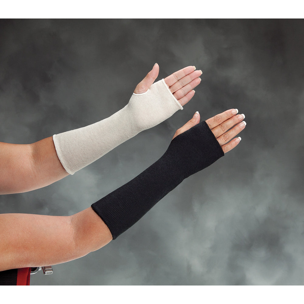 Soft, thin liner with finished edges fits most hands and arms Made of ribbed cotton with finished edges that prevent raveling Cotton absorbs moisture to keep skin cool, dry and odor-free Flat width measures 2" (5.1cm) Liners stretch to fit most hand sizes and measure 13" (33cm) long Washable and reusable Package of 10