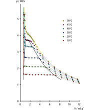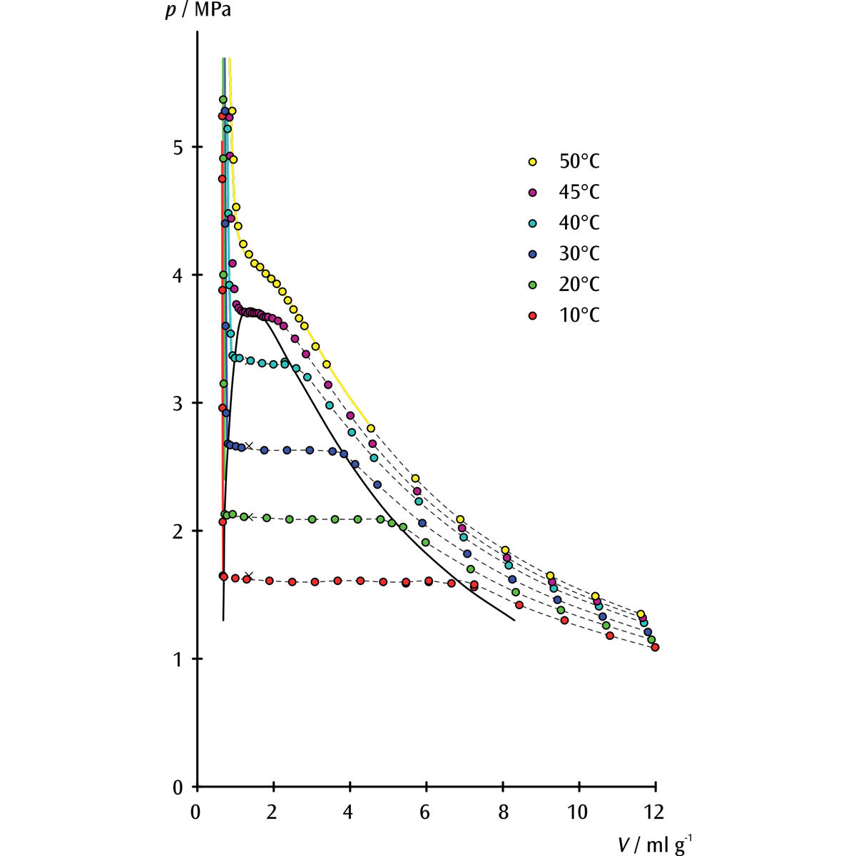 The apparatus includes a transparent measuring cell that is highly resistant to leakage and compression. The volume inside the cell is changed via a finely adjustable hand-wheel, the change being indicated by a combination of a fixed and a rotary scale to an accuracy of 1/1000 of the maximum volume. The pressure is generated by a hydraulic system containing castor oil of medically approved quality. The measuring cell and hydraulic system are separated by a cap seal which rolls in as the volume increases. This design means the pressure gradient between the measuring cell and oil chamber is negligible. A manometer measures gas pressure instead of oil pressure without taking up any dead space inside the measuring cell. During transitions from the gaseous to the liquid phases and vice versa, it is therefore possible to observe the formation of the first drops of liquid and disappearance of the last gas bubbles.