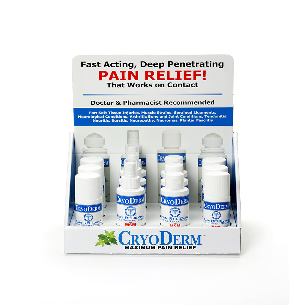 Professional strength topical analgesic in deep penetrating gel, spray or roll-on. Goes on cool to create a mask that blocks pain. Compliments physical therapy, athletic training, podiatric, massage therapy and rehab. Greaseless, non-staining formula. Choose from 7 different dispensers.