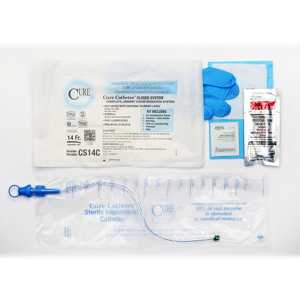Cure Coudé Catheter Closed System, 14 Fr - CURCS14C