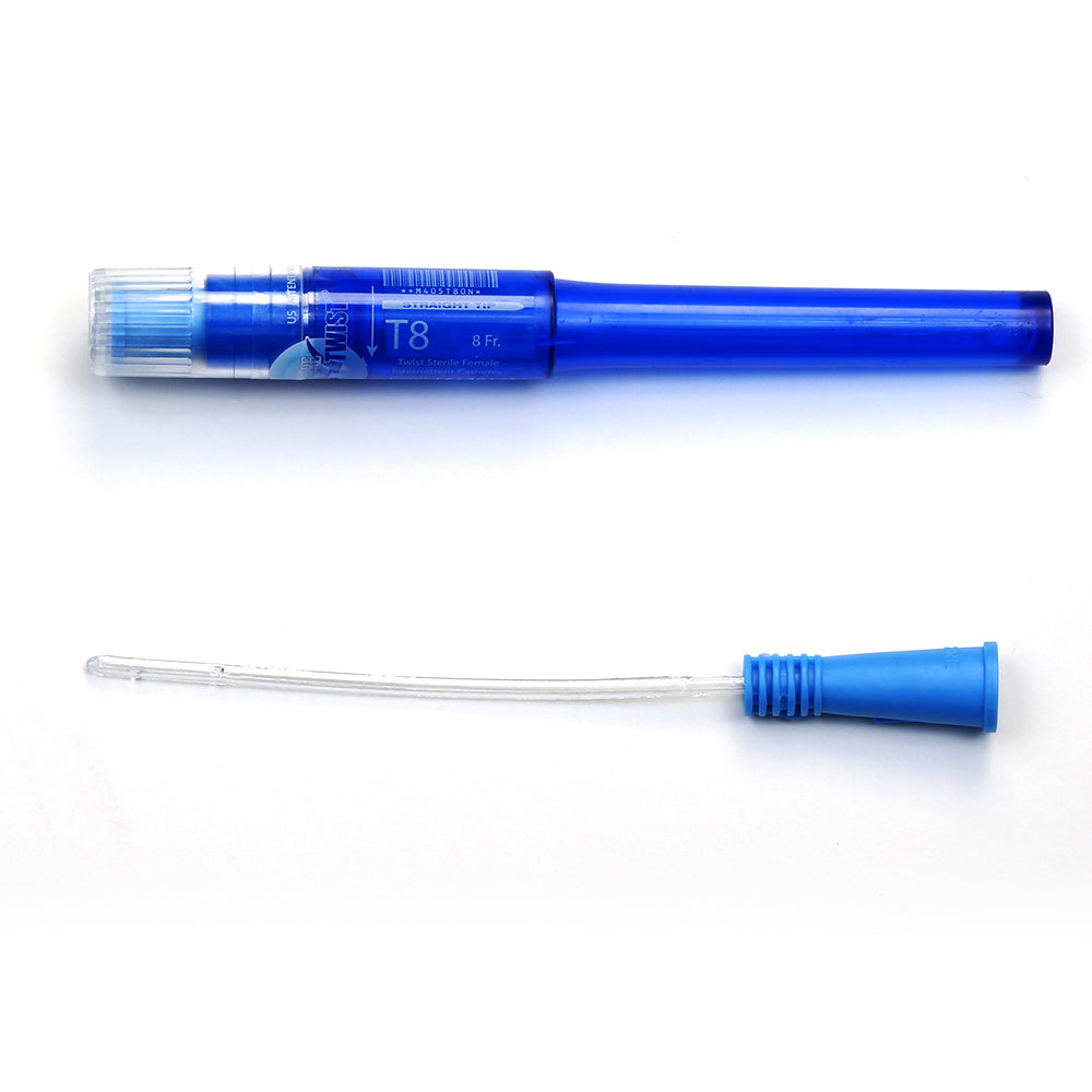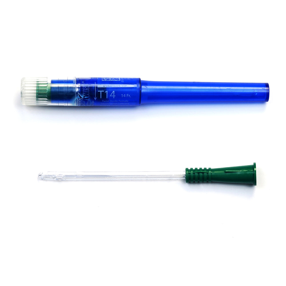 Sterile, single use intermittent catheter. Available in French sizes 8-16 Easy, twist-off cap in a small, portable configuration Smooth polished eyelets for increased comfort No Drip/No Mess pre-lubrication Attractive discreet dispenser – similar to cosmetics High quality materials – not made with DEHP/DINP, BPA, or natural rubber latex Offered with a universal funnel end for maximum compatibility with drainage solutions.