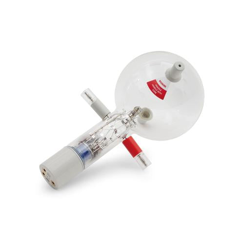 Part evacuated electron tube, filled with neon at low pressure, with tangential and axial electron gun. For determining specific charge e/m from the diameter of the filament beam in the case of tangential bombardment and a perpendicularly aligned magnetic field, and observing spiral paths of electrons in the case of axial bombardment and a co-axial magnetic field.