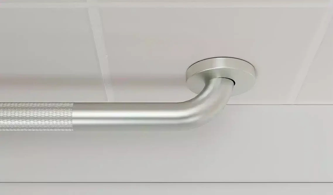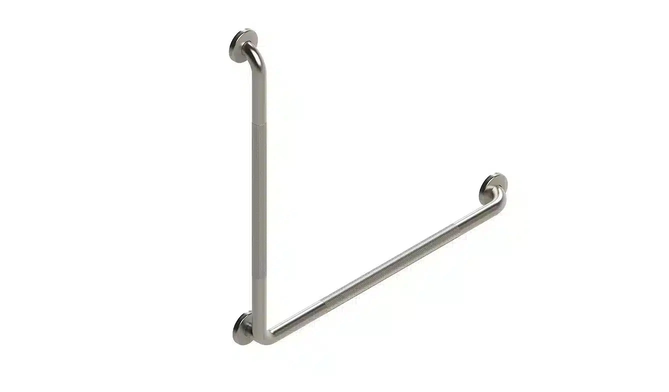 HealthCraft’s L-shaped grab bar is perfect for those tricky spots in your bathroom. Other L-shaped grab bars don’t always line up with the 16? on centre studs — which creates a mess when installing. Our nine-hole flange offers greater versatility and makes installation easy — and our bar is made specifically to stand up to the moisture of bathrooms, ensuring an enduring finish for years.