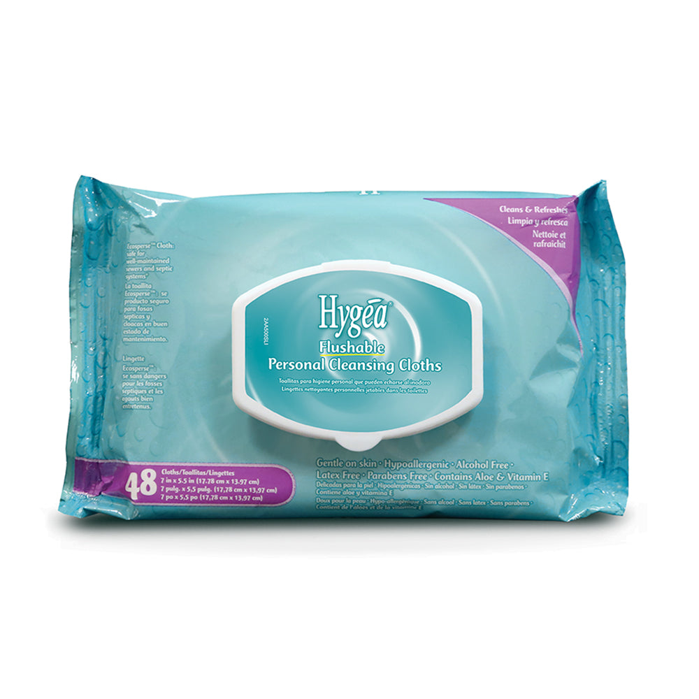 Hypoallergenic, alcohol and natural Latex-Free. Light, fresh fragrance. Hygea Flushable Personal Cleansing Cloths Item is sold as 1 pack of 48wipes