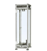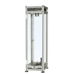 The apparatus is presented in decorative fashion inside a box with all sides made of glass and is lit from inside to make for a very eye-catching appearance.