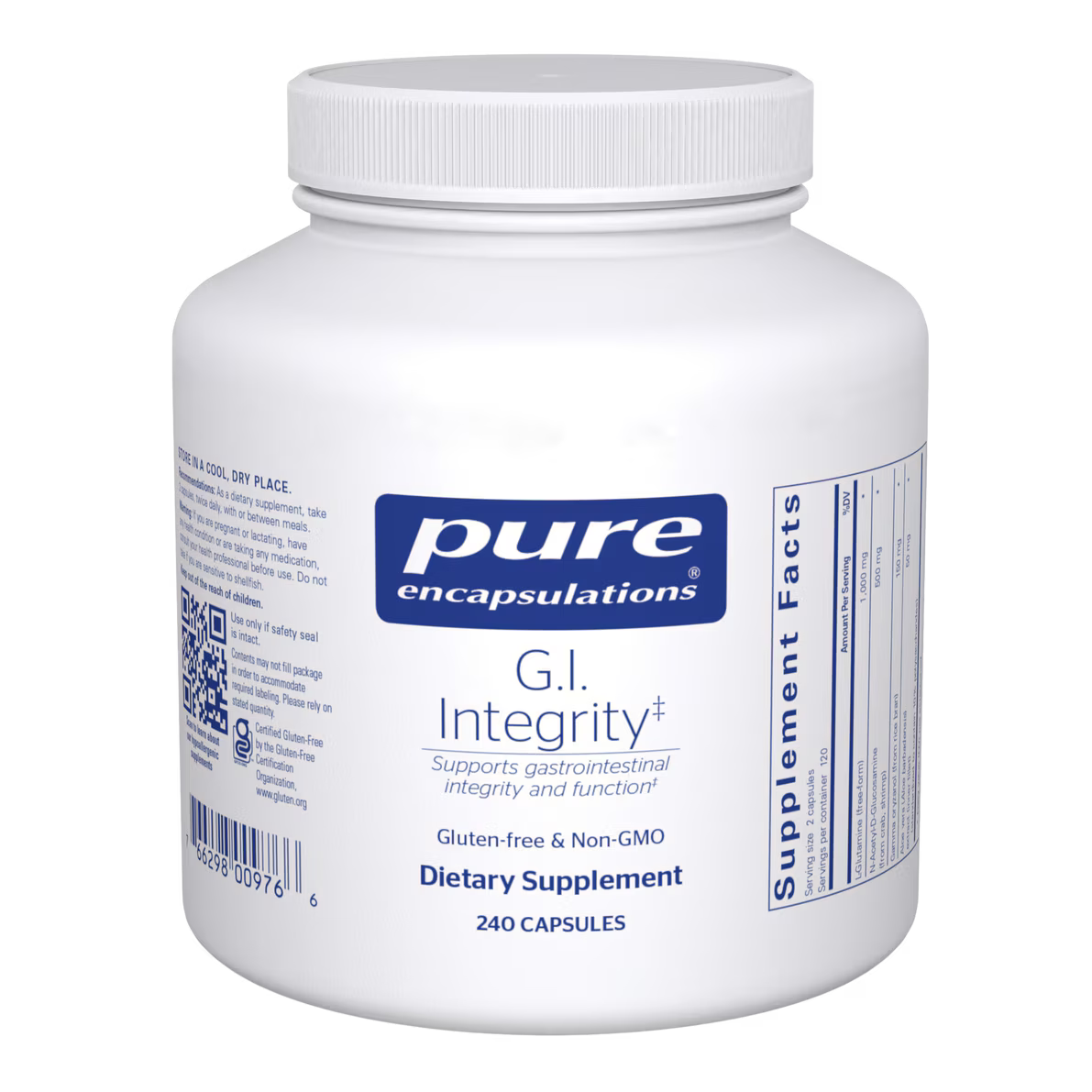 Glutamine, the most abundant amino acid in the body's promotes healthy everyday tissue repair. In the gut, it maintains intestinal integrity by supporting the protective mucosal lining and by maintaining healthy villous function.1 It is also an important metabolic fuel for the enterocytes and immune cells in the small intestine.2 N-acetyl-dglucosamine is a component of glycosaminoglycans and glycoproteins found in the gut's mucosal surface.3 Gamma oryzanol has a history of use in gastrointestinal applications, with preclinical data supporting its potential to moderate gastric secretions and promote gut function.4 The polysaccharide-rich inner filet of aloe vera maintains healthy prostaglandin metabolism, immune mediator activity and antioxidant defenses.5-8 In a randomized, double-blind clinical trial, volunteers reported positive intestinal support compared to placebo after 4 weeks of aloe vera supplementation.6‡