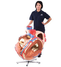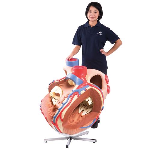 See every anatomical detail of the heart with this giant 8 times life-size model. Painstakingly constructed by hand, this heart will be the center of attention at any exhibition and it is especially suitable for lecture halls. The atria and ventricles of the heart are open to give a view of the interior, and show the accurately modeled bicuspid and major vessels adjacent to the heart. The coronary heart vessels are also shown very accurately. This gigantic heart is one of a kind! Giant Heart on stand.