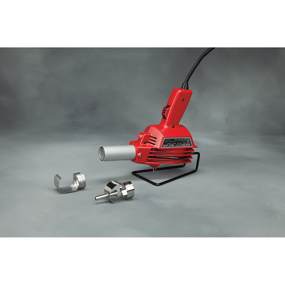 Convenient heat gun is quiet and lightweight. Heat Gun is designed for use with all types of thermoplastic materials. Heating element is rated to 650°F (343°C) and uses only 4.5 amps. The 120 volt model has a three-pronged plug. Includes bench stand for hands-free use. Asbestos free. Latex free. One year warranty.